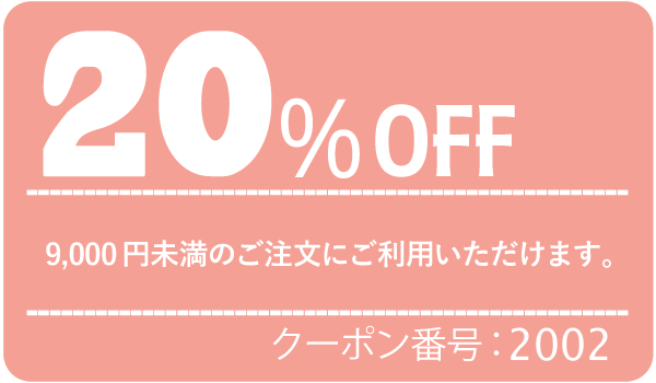 9,000円未満のご注文はこちら。20%OFFになるクーポンです。