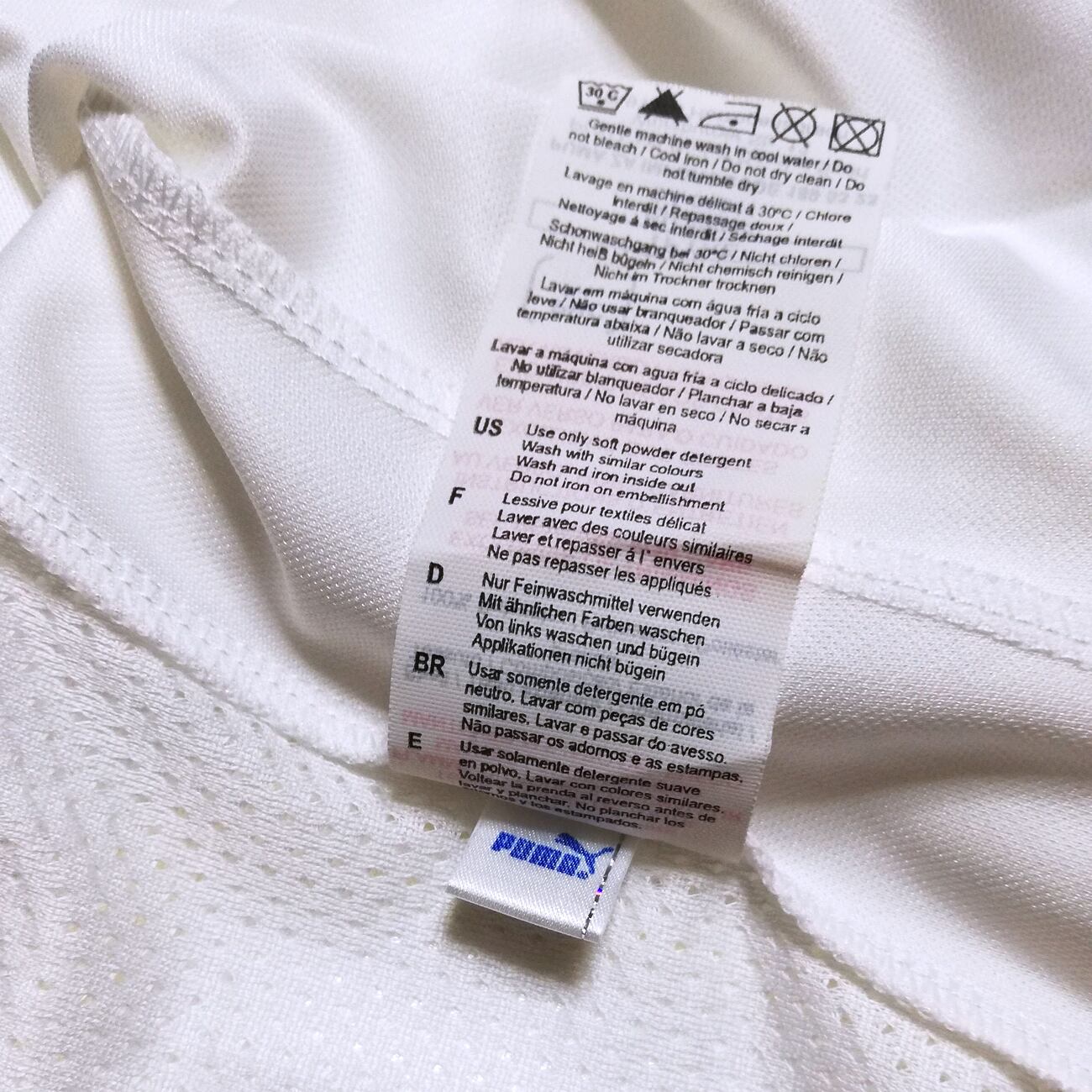 ・胸と両肩のPumaキャットロゴに部分的な剝離・浮き(1か所画像あり)。