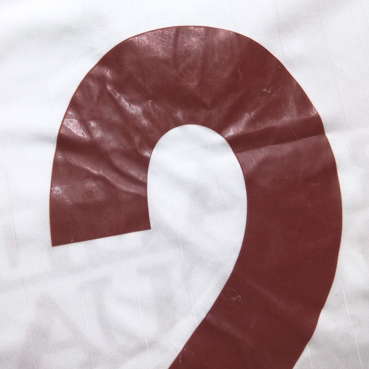 シャツに残ったプレス跡から、ネームはシートではなくブロック(文字単位)の圧着に見えます。一番最後の「O」の位置が窮屈な点から見ても恐らく間違いありません。