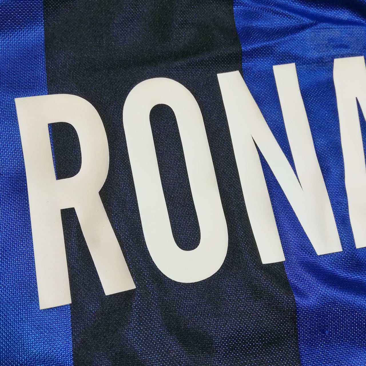 シャツには当時のブラジル代表FWロナウドのネームナンバーをプリント済み。右袖にはレガカルチョパッチ(レプリカ)を装着済み。