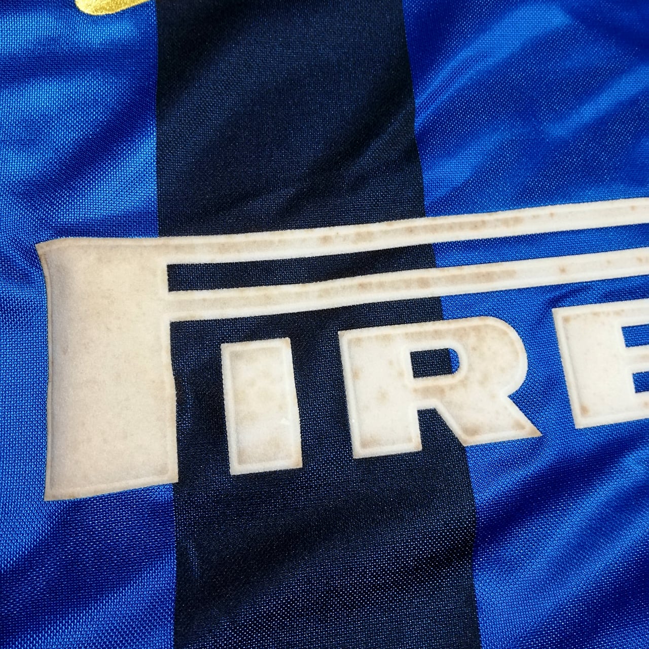 当時の胸スポンサーはタイヤメーカーの「PIRELLI(ピレリ)」。インテルのユニフォームでは最も人気があるスポンサーロゴで、1990年代・2000年代のユニフォームの象徴的な存在でした。