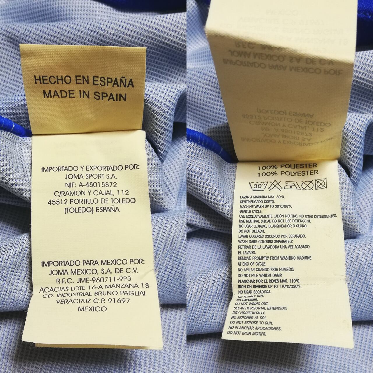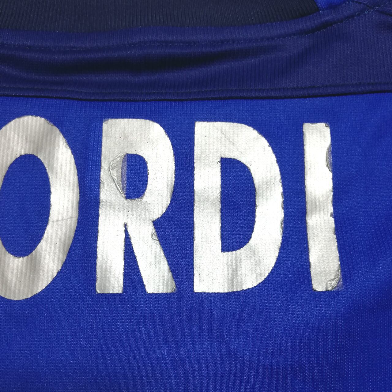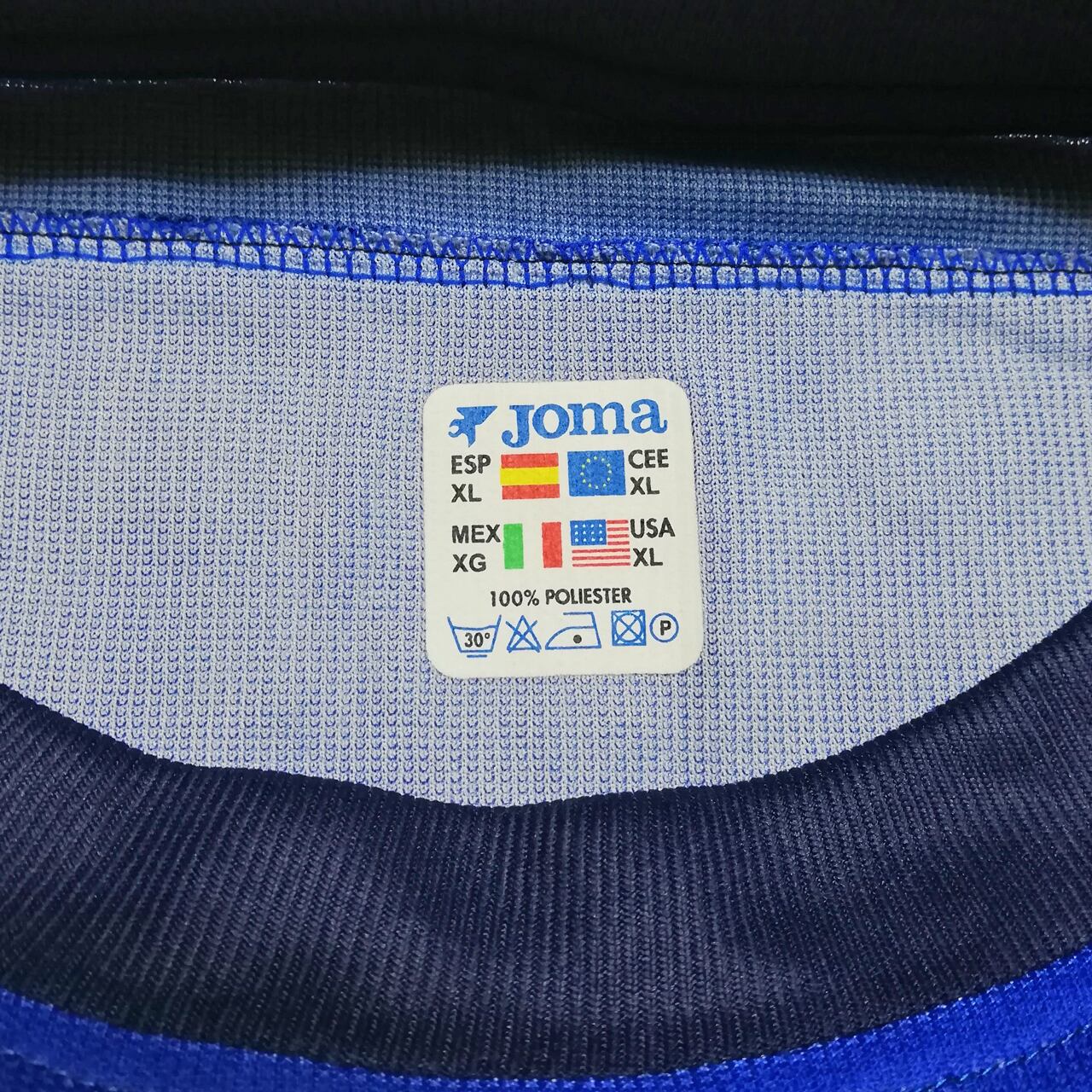 同じく襟内側のJomaのラベルは左上にスペイン国旗を描くデザイン。これは主に2002-03、2003-04シーズンで使われていたタイプなので、当ユニフォームは初期ロット品でシーズン序盤に使用した可能性もあります。