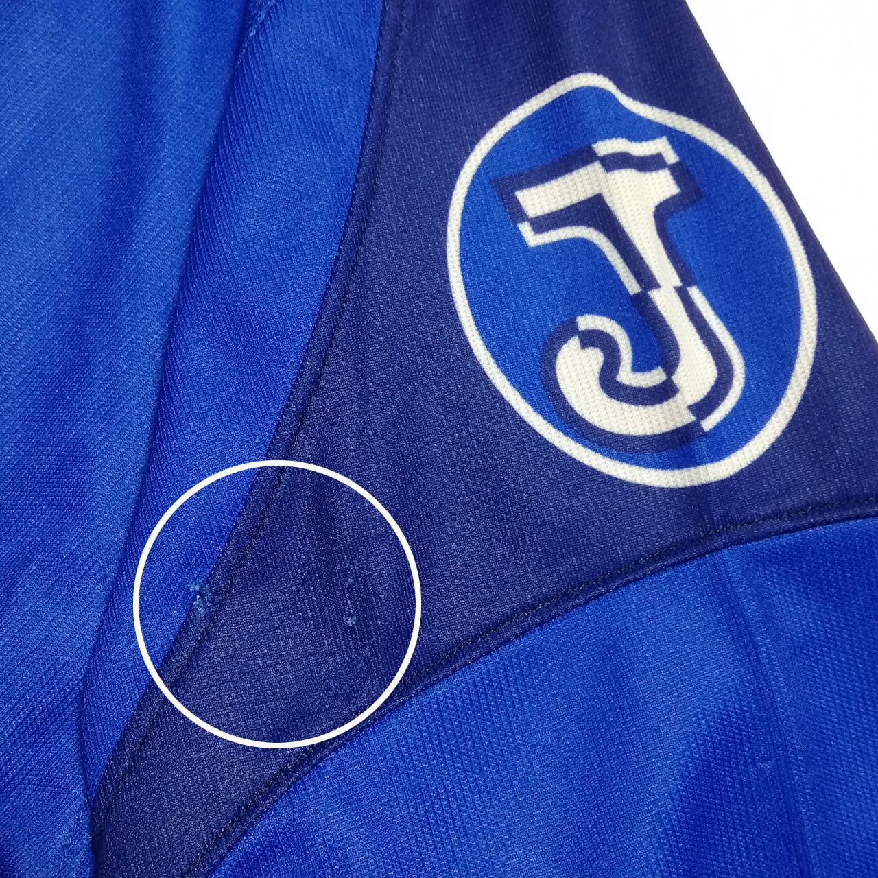 襟内側のネックテープは青ですが、現在確認できる当時のキットはレプリカと選手用のどちらも白がほとんど。青は比較的珍しいかもしれません。
