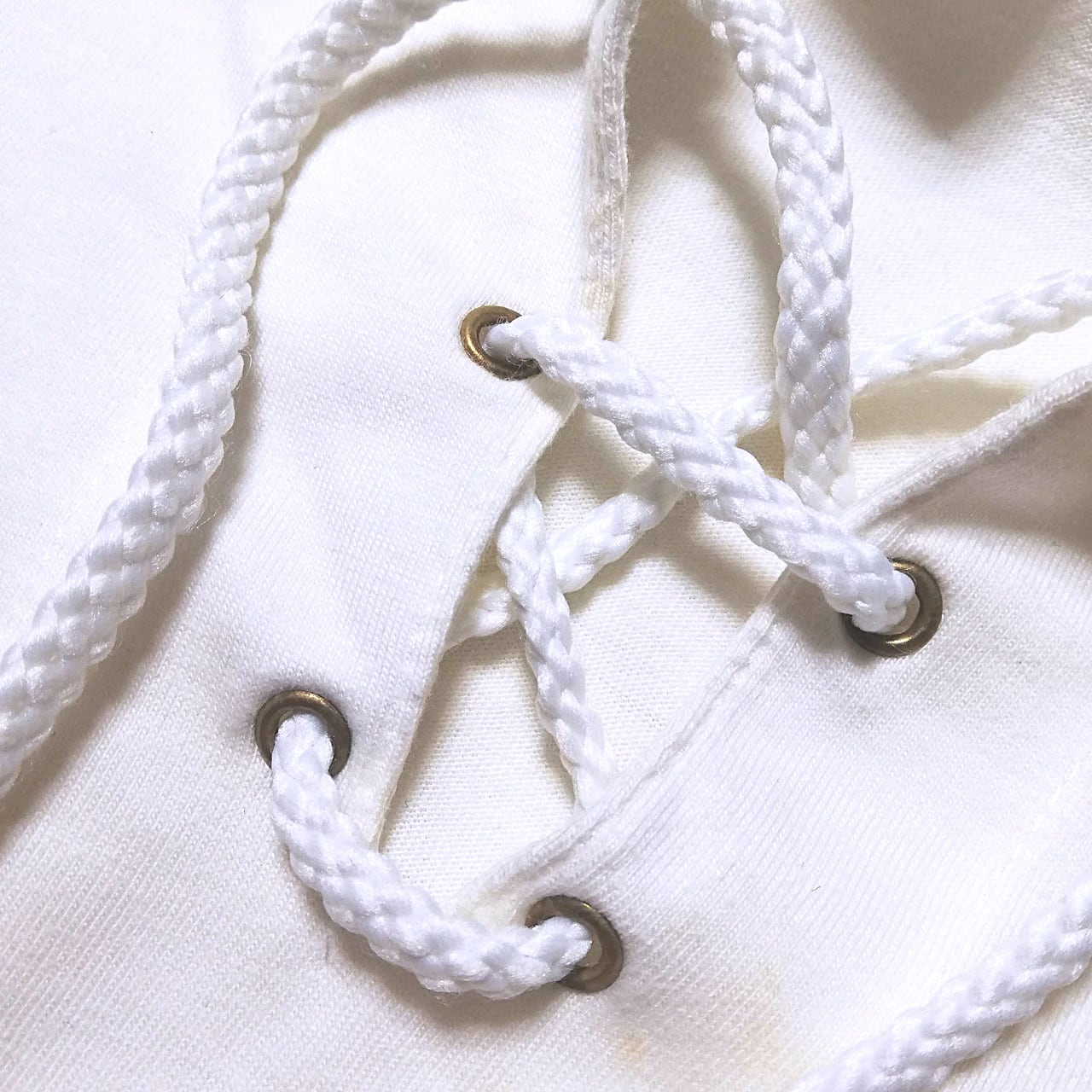 ●紐の通し穴(ハトメ)はアンティークゴールド調の金属製。裏地側は菊割れと呼ばれる開くタイプを使用。