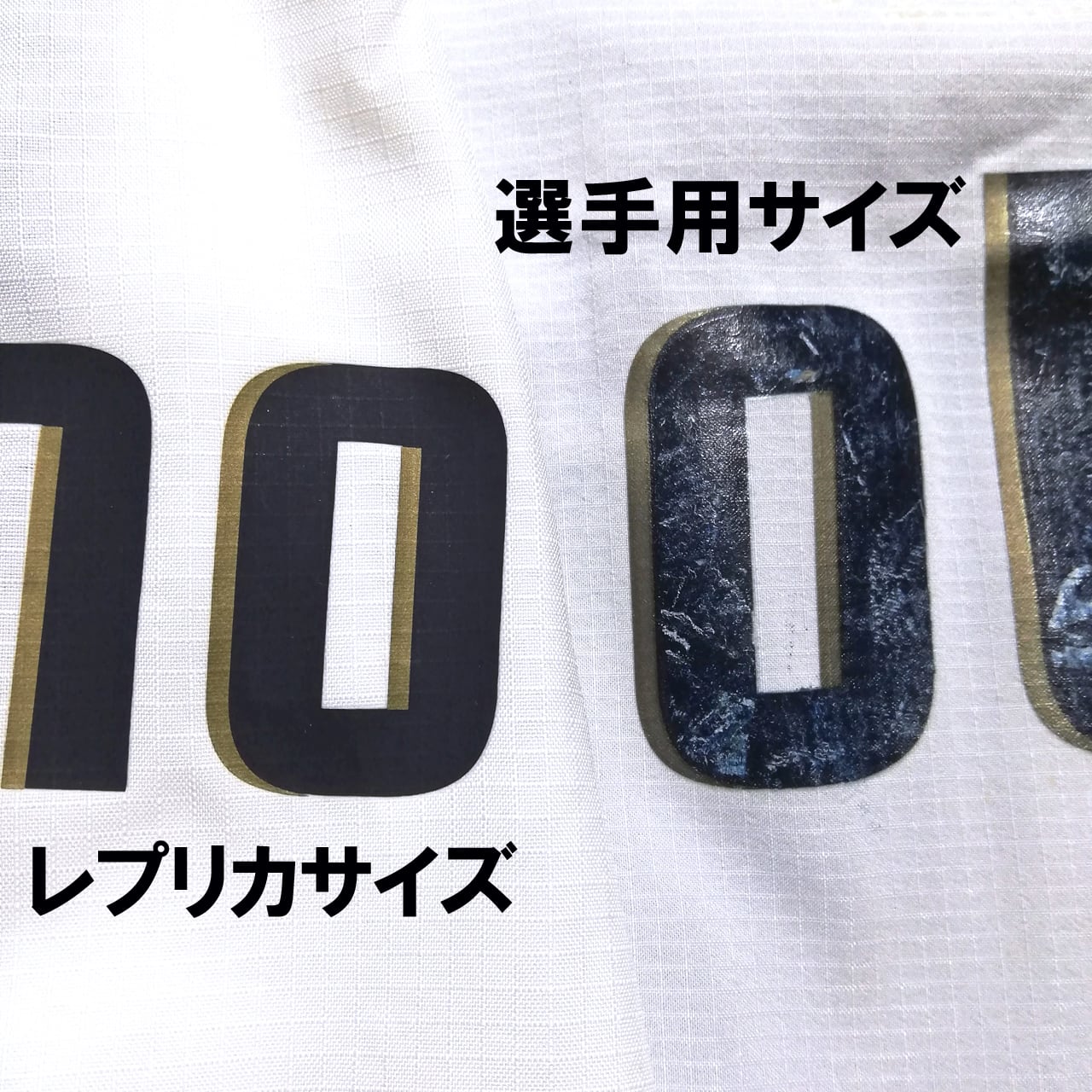 また、選手用のネームはレプリカよりも一回り大きいサイズで、比べるとその差は一目瞭然です。