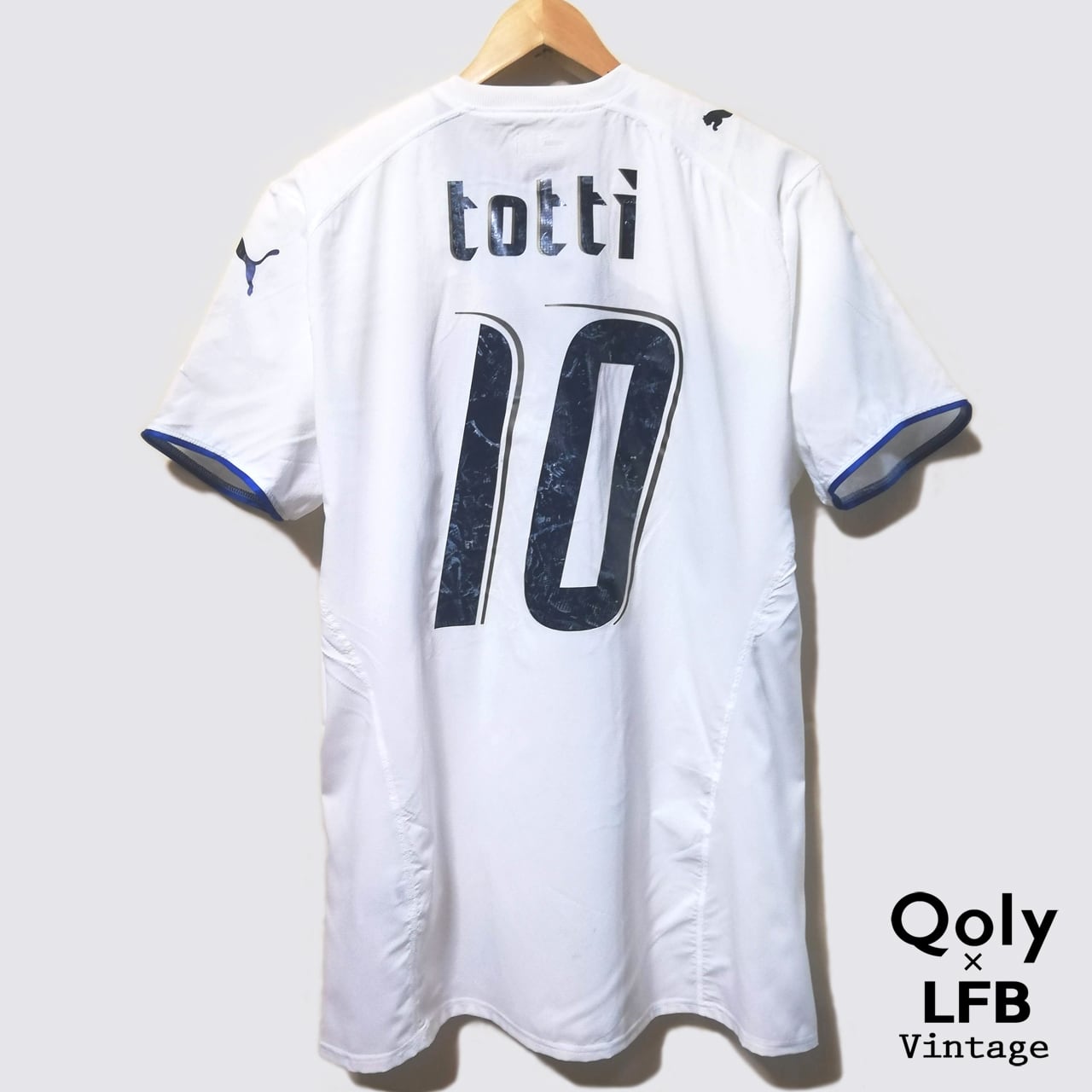 当商品が実際の選手支給品だったのか。そうではなく流出品にプレイヤー用のネームナンバーをプリントしたものなのか。これについての詳細は不明です。ただ、当時のトッティは基本的にXLサイズの着用が多かったようです。