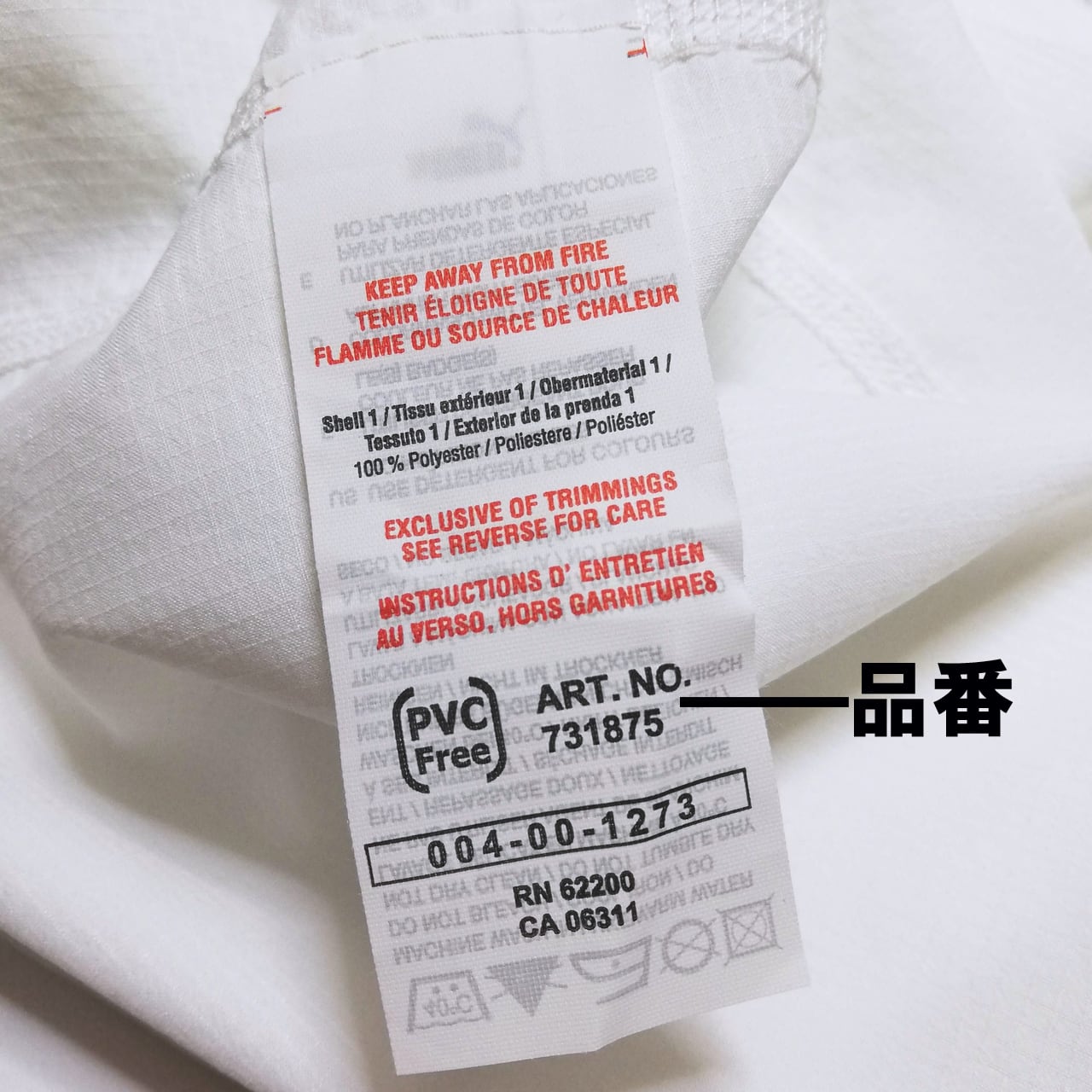 ●紙タグは付いていませんが、内タブで選手用半袖の品番「731875」を確認可能(レプリカ半袖は「731948」です)。