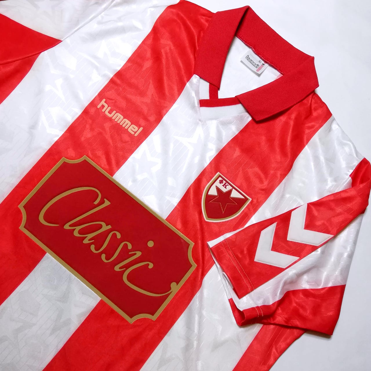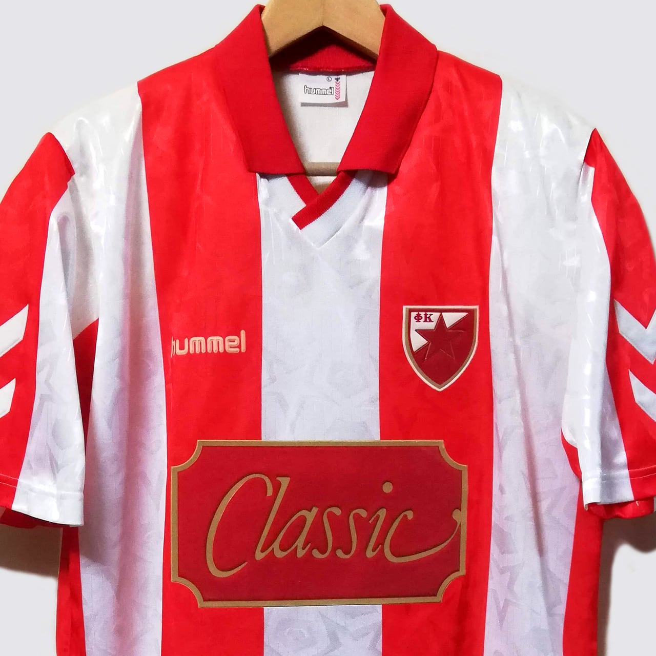 【USED】 FKツルヴェナ・ズヴェズダ(レッドスター・ベオグラード) 1991-93 hummel ホーム半袖 ユニフォーム(インポートL)