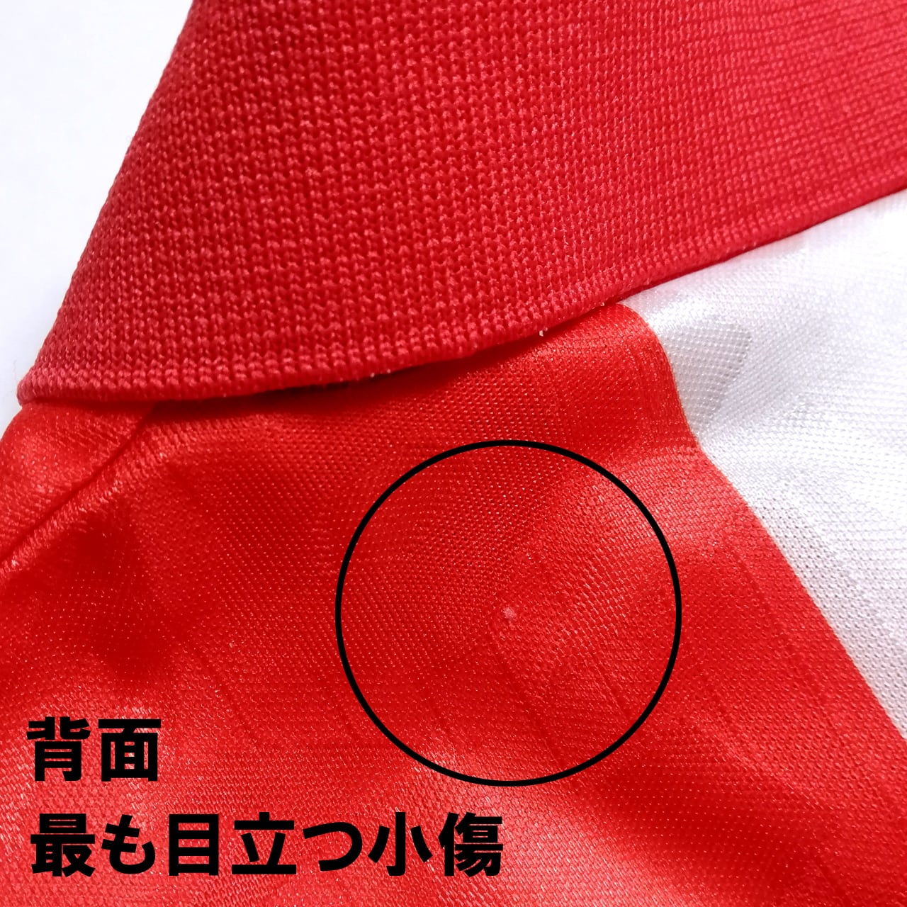 裏側から見ると補修したと分かりますが、表側からはじっくりと見ない限り気付かないレベルで、このユニフォームの価値を毀損するものではないと思われます。