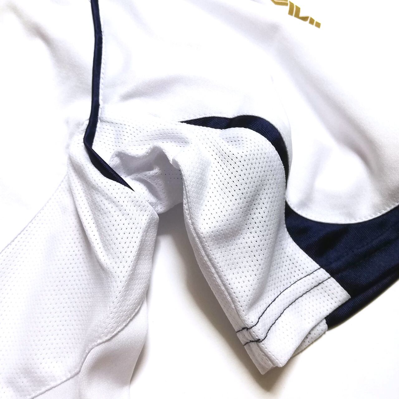 ●袖のMCライン(ミズノを象徴するライン)はゴールド。レプリカは模様入りのブラック。