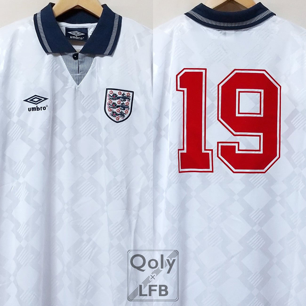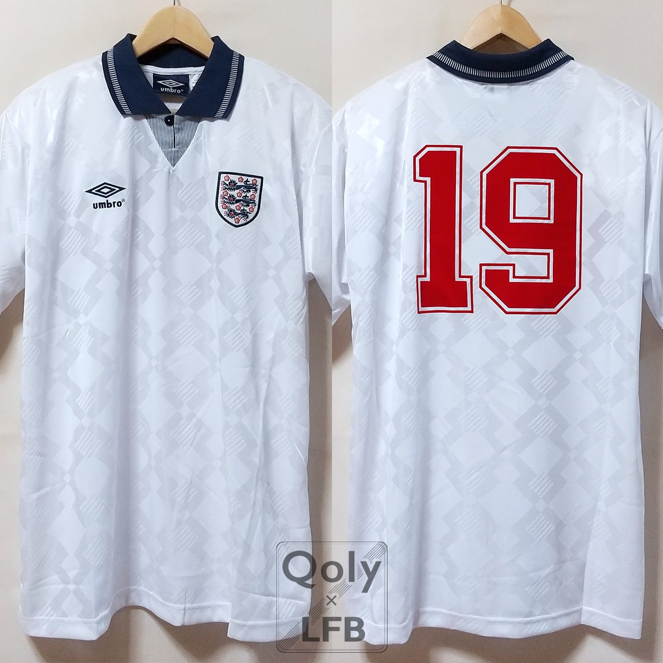 イングランド代表 1990 Umbro 復刻版 ホーム半袖 #19 ポール・ガスコイン(インポートXL)