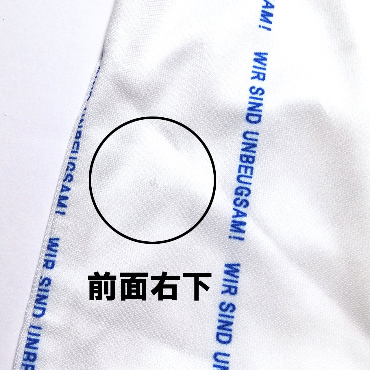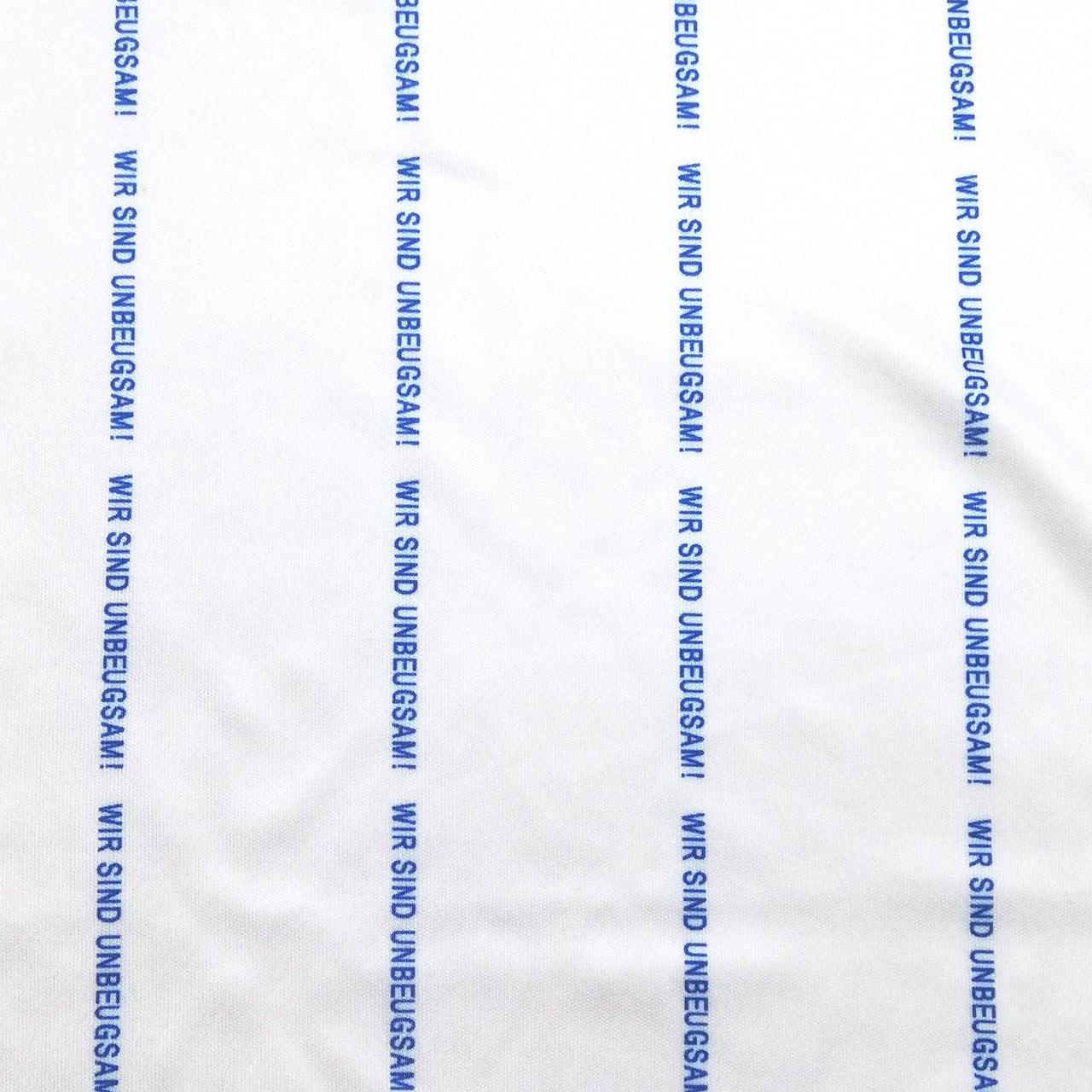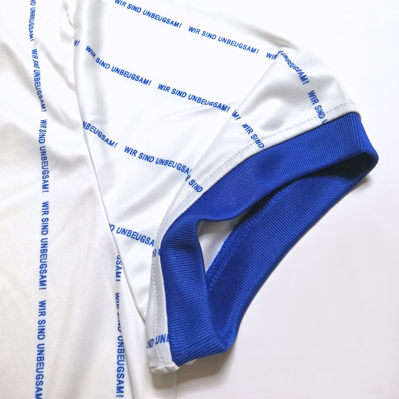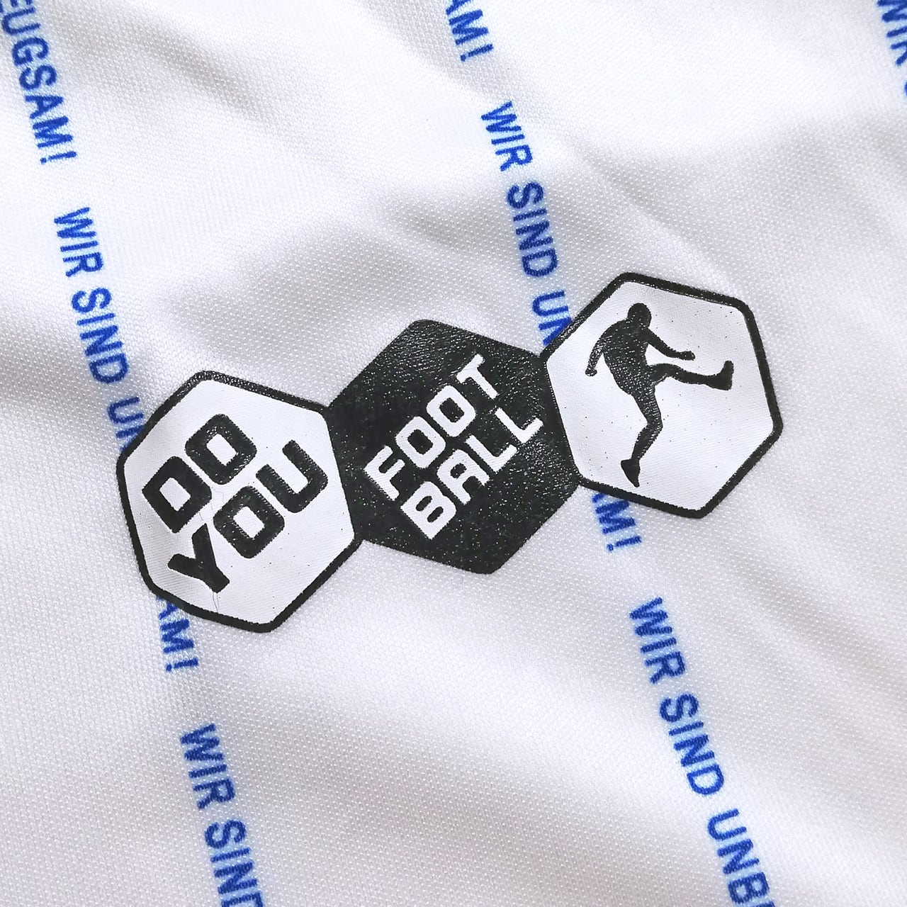 クラブスローガンの一つで、妥協しない意志の固さを意味する「WIR SIND UNBEUGSAM!」をピンストライプ風に落とし込んだデザイン。