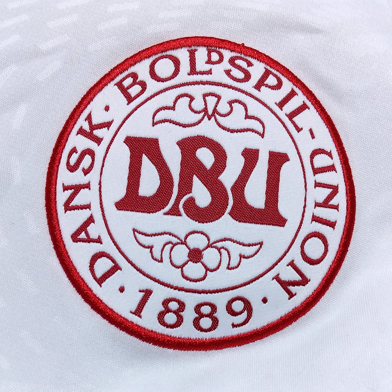 背面首元には金糸で“Dansk Boldspil-Union”(デンマークサッカー協会)をレタリングしています。