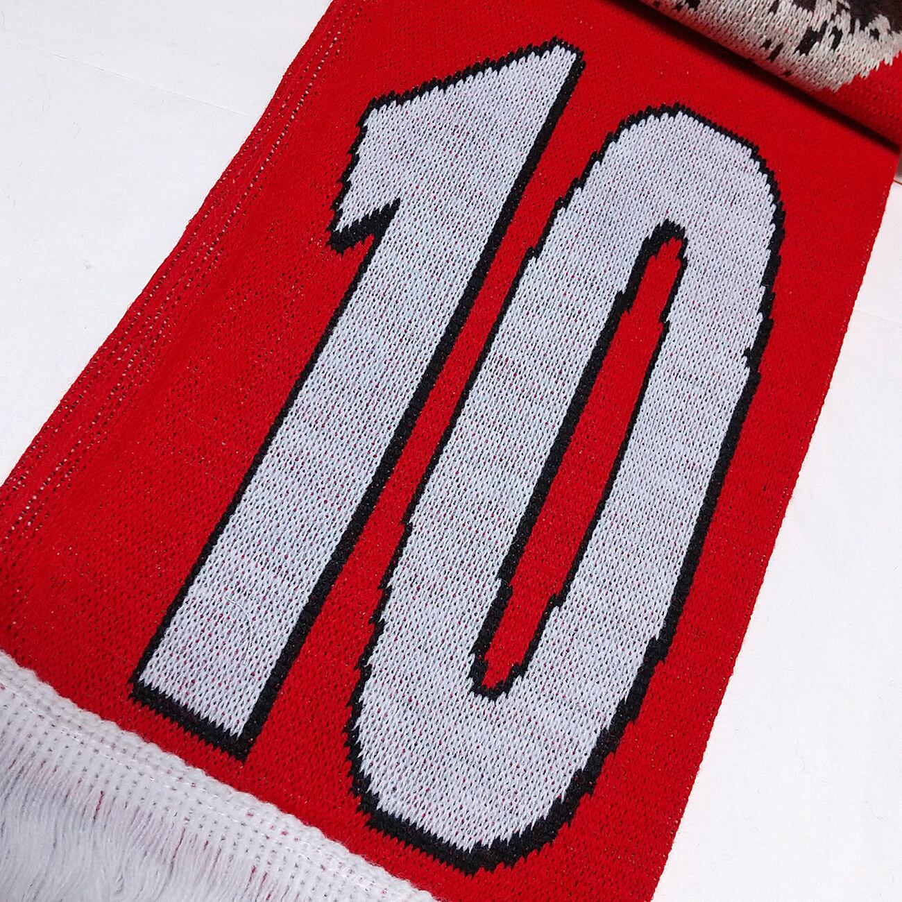 レジェンド選手マイケル・オーウェンが在籍時代のレアな一品で、オーウェンの顔と当時の背番号10をデザインした両面同じデザインを織ったジャガードマフラーです。